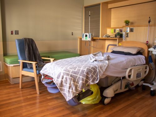 • Modernized birthing rooms complete with private full bathrooms (some with bathtubs), televisions, areas to store personal belongings, and large sleeper platforms/chairs to accommodate an overnight support person. Most rooms also have a mini fridge for small snacks.